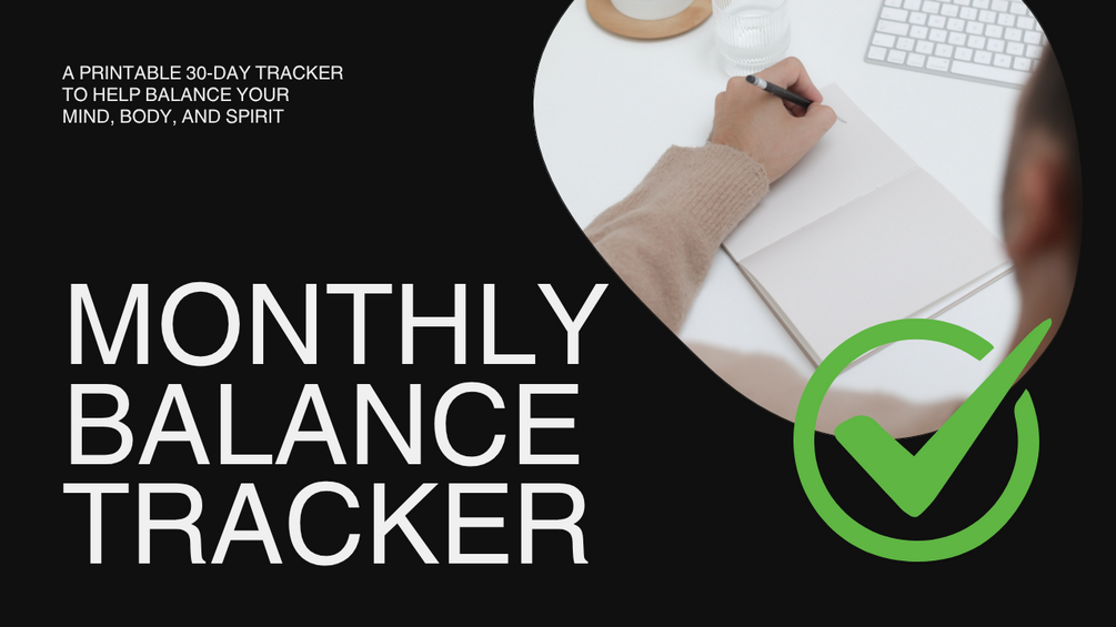 Finding balance isn't about perfection—it's about intention and gentle progress. This 30-day printable tracker helps you notice your daily habits, track your self-care, and intentionally balance your energy across mind, body, and spirit.